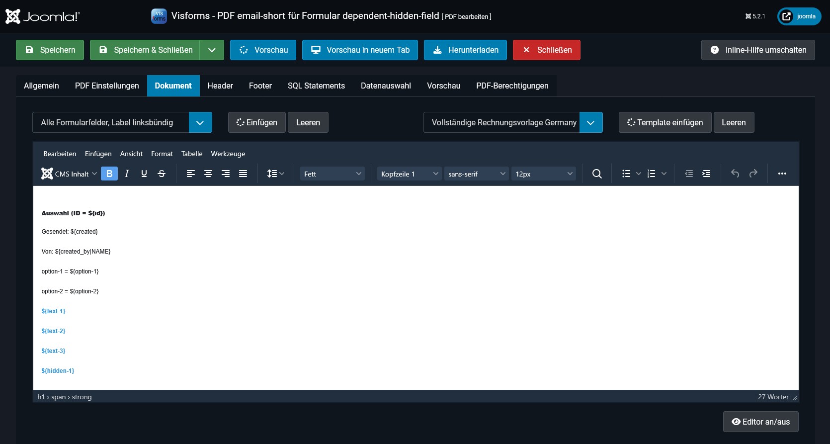 Damit erleichtert sich der Aufbau des E-Mail-Templates und des PDF-Templates.