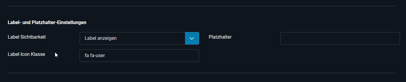 Gruppe: Label- und Platzhalter-Einstellungen » Parameter: Label Icon Klasse = ‘fa fa-user’.
