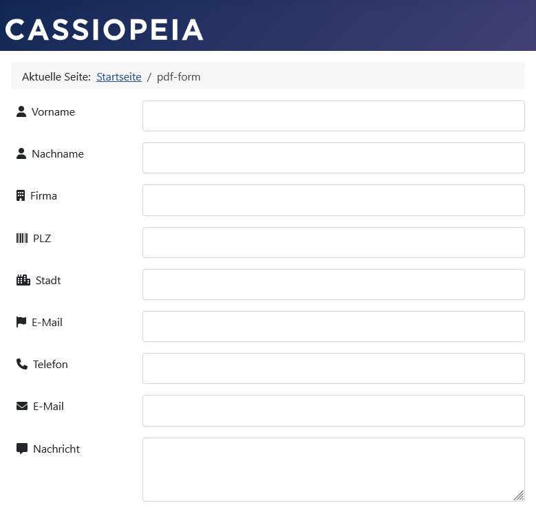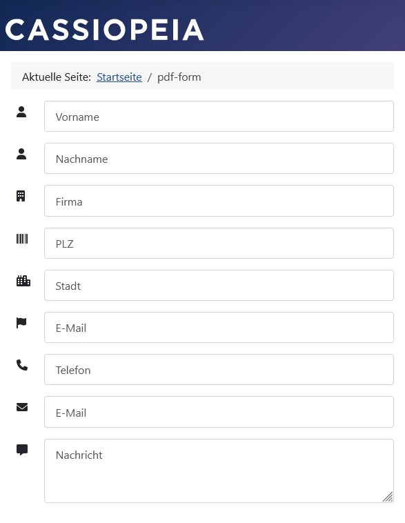Das Formular zeigt alle Feld-Label mit jeweils einem zusätzlichen unterstützenden Label-Icon aus dem Icon-Font Font Awesome an.